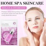 Snail Serum facial mask contains potent snail extract, known for its moisturizing, hydrating, and regenerating properties. The formula deeply penetrates skin cells to soothe dryness and minimize fine lines, leaving the skin beautifully hydrated, lacquered, and glowing