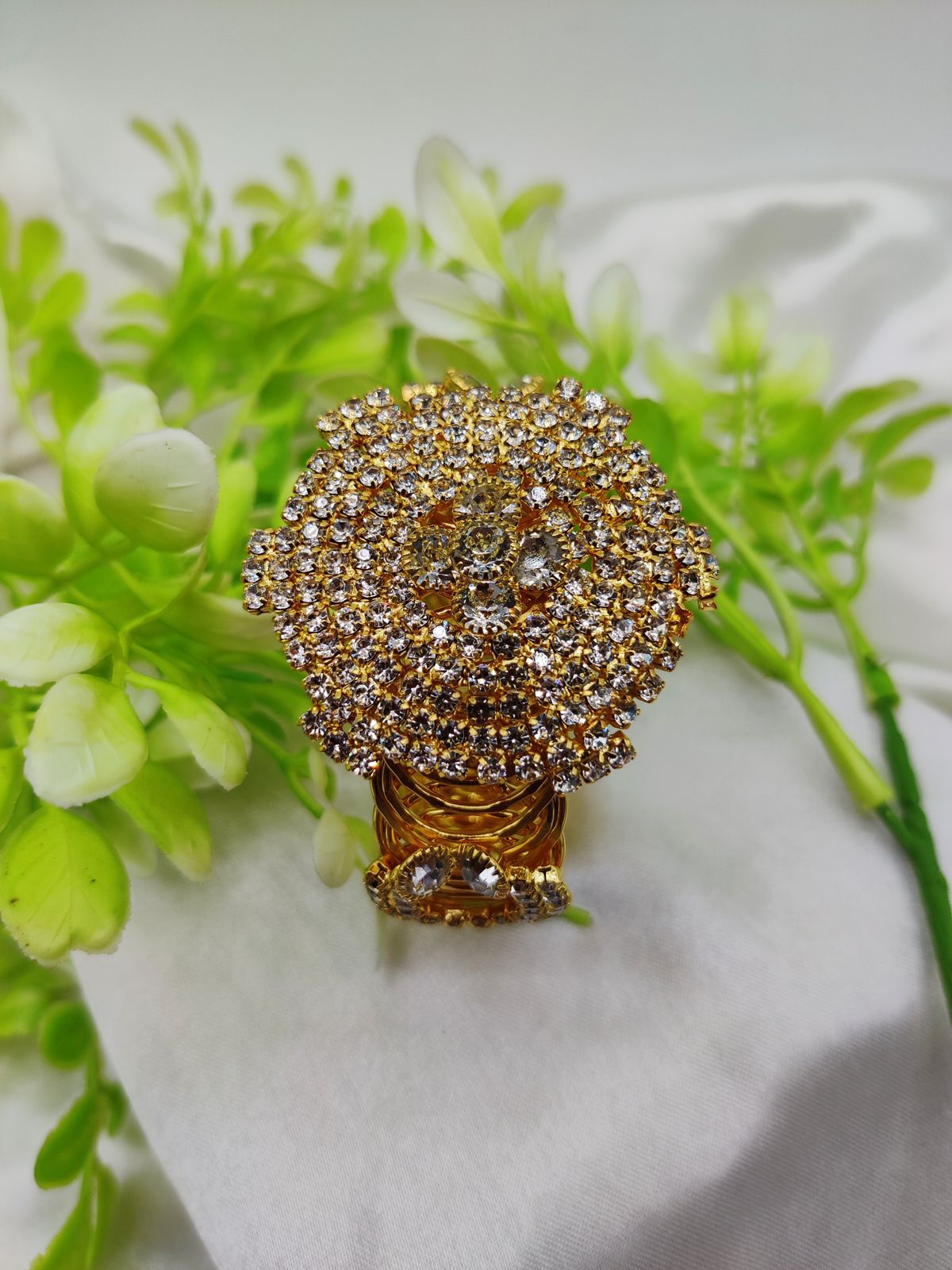 Celebrate timeless beauty with the Golden Bloom Luxe Bracelet. This intricately crafted masterpiece features a radiant floral centerpiece adorned with shimmering crystals that catch every ray of light. The luxurious golden finish enhances its regal appeal, making it the perfect accessory for weddings, parties, or any grand celebration. This adjustable and imported bracelet ensures a perfect fit for all, blending comfort with style. Elevate your collection with this dazzling piece that exudes grace and sophistication.