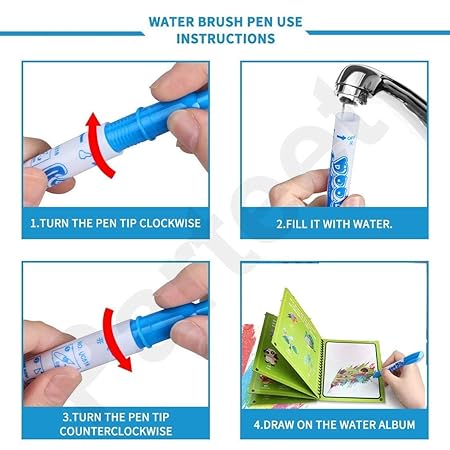 Draw with water and magic pen-no paint is required, all you need is tap water. No more dirty clothes or messy room. Colored area will gradually fade after about 5 to 10 minutes as the colored areas dry, and the pages can be colored again.