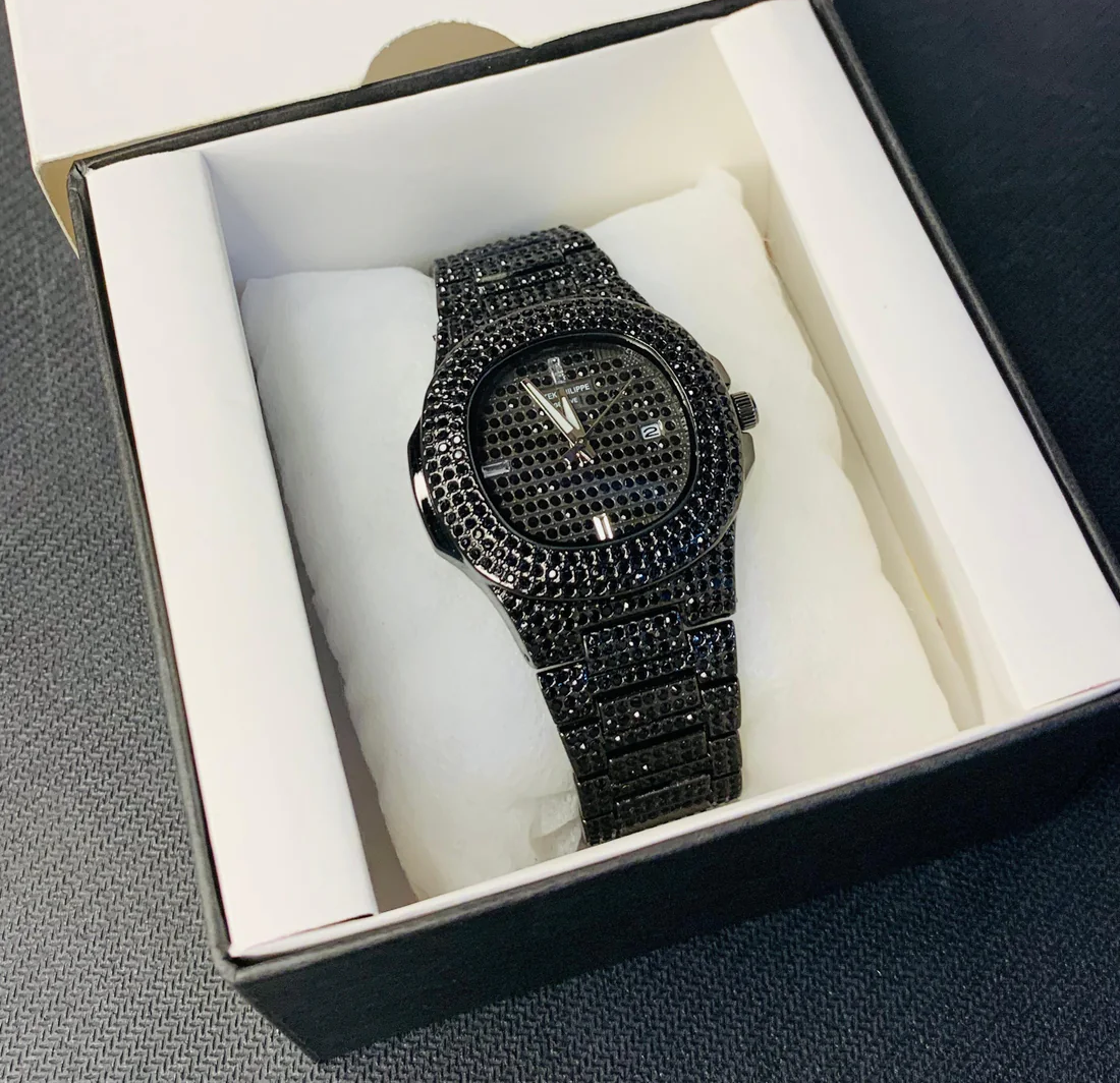 • Blacked Iced Out Chain Watch for Men’s Fashion.
