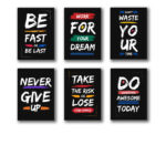 Pack of 6 Motivational sticky wooden frames for wall decore / sticky phototiles